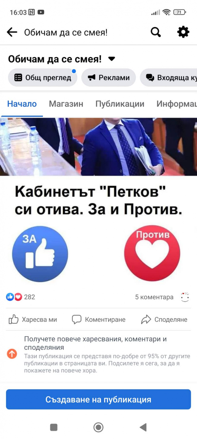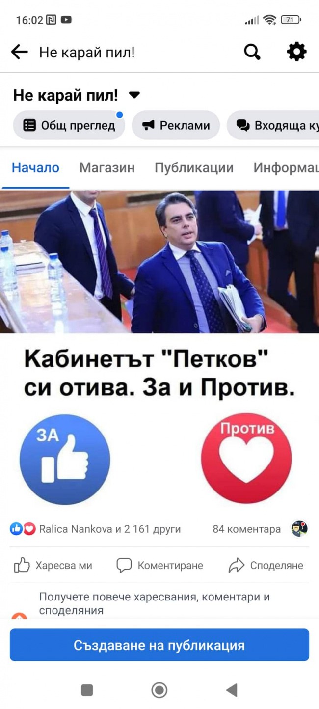 Днес, в деня на реалния вот на недоверие, повторихме анкетите и в крайна сметка съумяхме да получим чувствително над 10 000 мнения на обикновени българи, които обаче пожелаха виртуално да дадат своя глас "За" или "Против" правителството на Кирил Петков. Политическите анализатори и най-вече социолозите обичат да си служат с термина "представителна извадка". Въпросното словосъчетание се отнася в пълнота и обхваща нашите анкети, защото в тях участие са взели не само огромен брой потребители на Фейсбук, но и хора с различен етнос, социална прослойка, живеещи в села и градове - изобщо картинката е точно "представителна извадка". Такава, която поради масовостта си със сигурност излиза извън рамките на тясната партийна подкрепа, фейк профилите и платените профили.