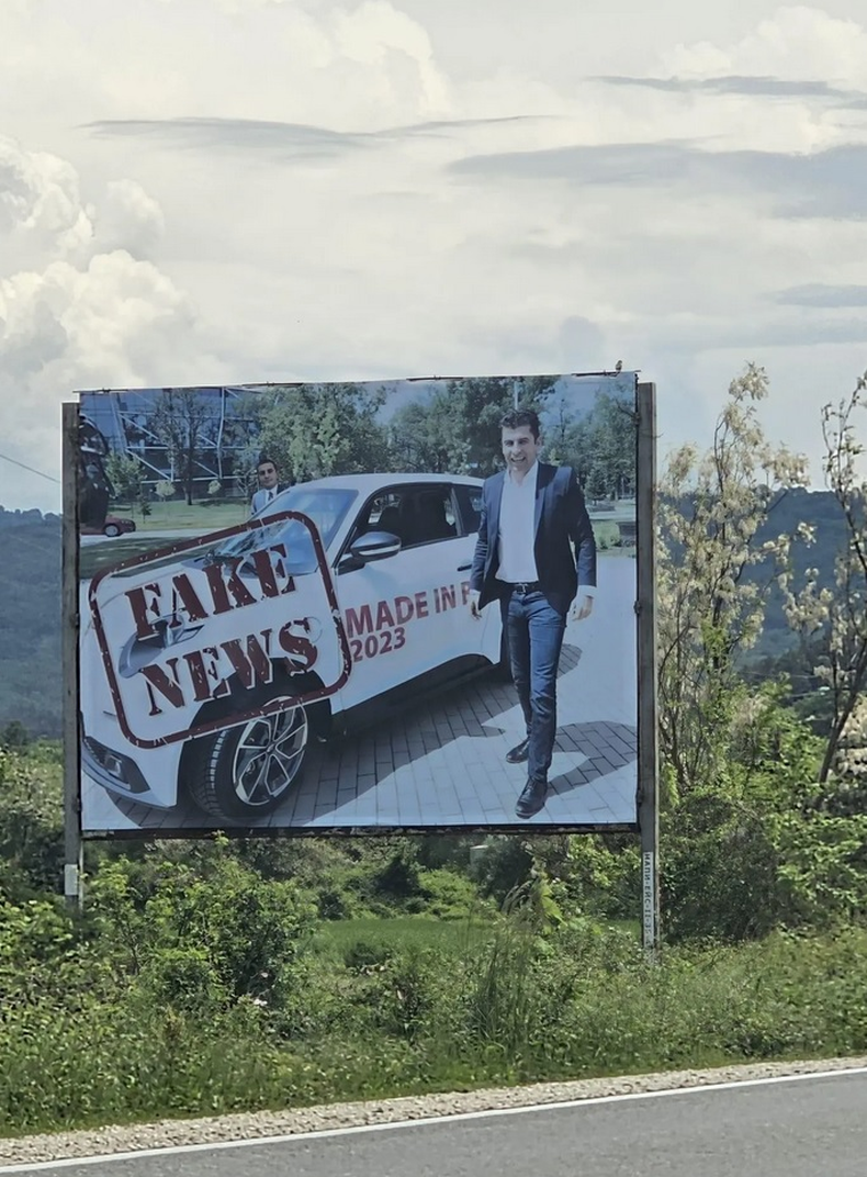 Уникални билбордове забавляват жителите на Ловешко. Районът осъмна с предизборни транспаранти на Кирил Петков, ППДБ и… завода за електромибили, който така и не се осъществи.