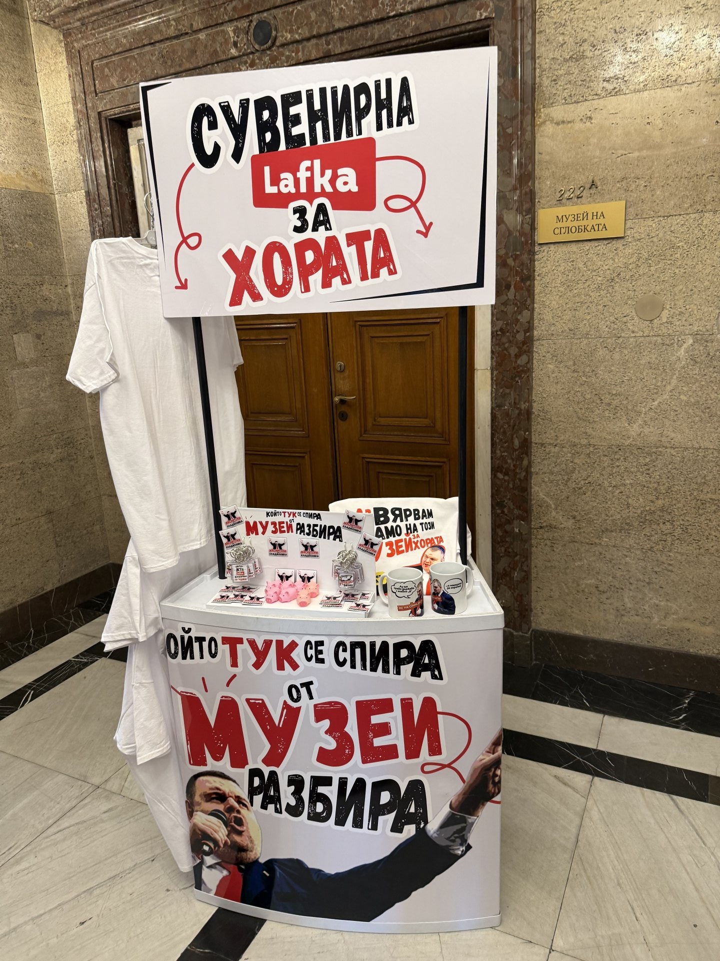 "Какво е музей без сувенирен магазин - затова сме подготвили една сувенирна Lafka. Идеята е всеки да мине през Lafka - ката и да си вземе ключодържател, магнит, чаша, тениска или прасе", заявиха от МлаДа България.